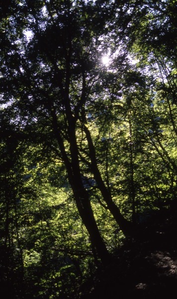 これは青木ヶ原樹海の森ではなく、三ッ峠山から河口湖〜西湖〜精進湖の北面に連なる御坂山地の森です。このあたりは御坂山地の末端部に当たります。
