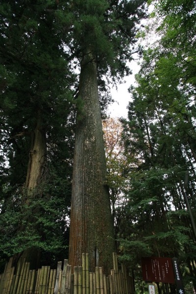 参道を登り、仁王門をくぐって境内に入ったところに「水沢の観音杉」がありました。解説板によると樹齢およそ700年で、目通り周囲5.14m、高さ38mとのことです。