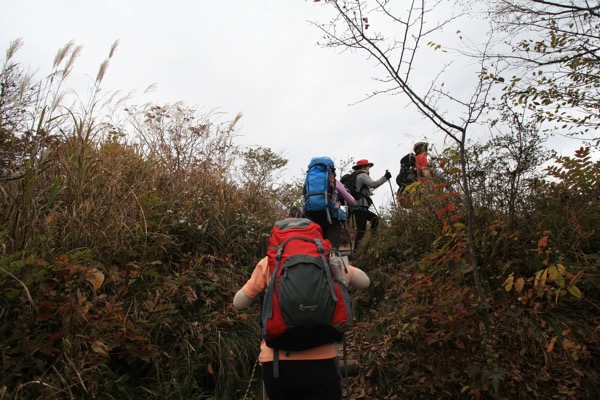 JR上越線から見た山容の、おにぎり型の斜面を登っていく感じです。だらだら行くよりは気分がいいともいえますが。