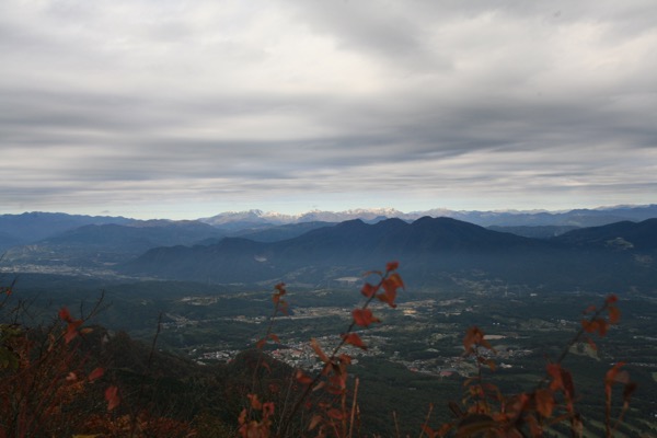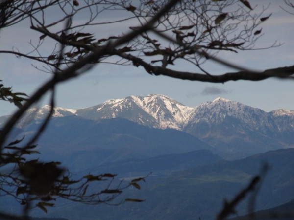 すでに雪をかぶった谷川連峰が広がっています。手前にあるのは小野子山、右手に子持山が連なっているのですが、この写真では切れています。次の写真をどうぞ。