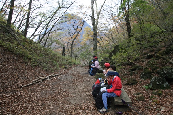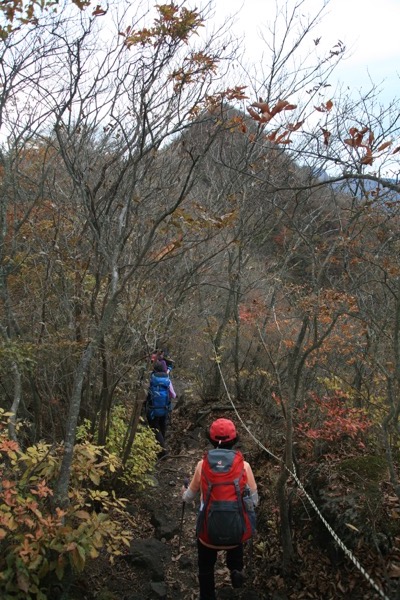 *私たちは向こう側に下って、森林公園を抜け、雄岳と雌岳の二ッ岳に登って伊香保温泉に下るのが定番となってきました。今回は雄岳への登山道が崩落で通行禁止になっていたのが残念でしたが。