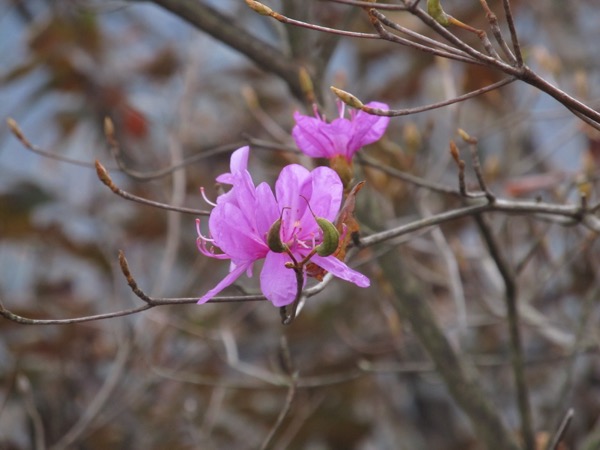 秋咲きのツツジがあるのかと調べてみるとヤマツツジには「二度咲きツツジ」「秋咲きツツジ」などの別名があるという説がネット上にありました。ヤマツツジといえば朱色系の花ですが、そこにはこれと同じような紫系の花の写真が載せられていました。さて、そういうことなのでしょうか?