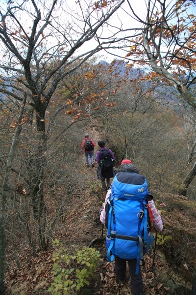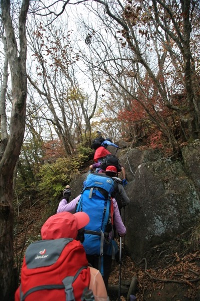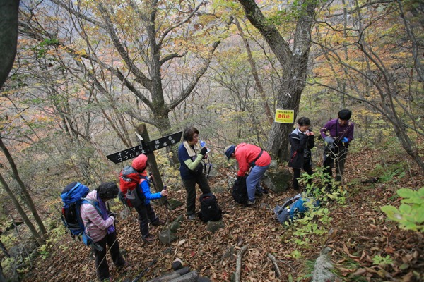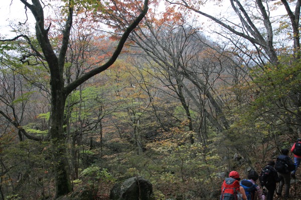 じつはこの日、このあたりで下山してくる登山者と何度もすれ違っています。みなさん登山という服装ではなくて散歩です。しかもたいていひとり。しかも女性も。いずれも水澤観世音に車を置いての往復登山のようです。平日だというのに。声を交わしてみると、ご自慢の山のようです。