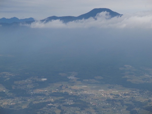 山の姿、ありました。左前方に見えるのが赤城山。その麓を左から右に利根川が流れています。右端の霞んでいるあたりが高崎市街です。