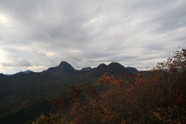これが二ッ岳の雄岳と雌岳。雌岳からこちらを見ると水沢山がすばらしい山に見えます。雄岳からだと榛名湖や榛名富士がきれいに見えるのですが、じつはこの日、途中に崩落事故があって通行禁止ということで登りませんでした。