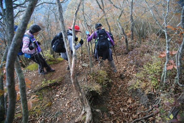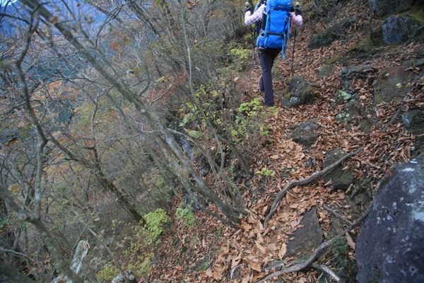 下りも痩せ尾根なのでこんな場所もありますが、道はしっかりと整備されています。