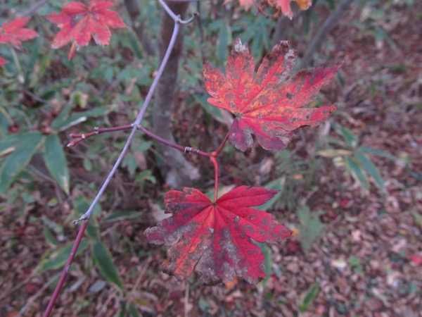 色づいているのはツツジだと思います。ピークの色ではないのでしょうが、これだけの秋色でも見ると嬉しいのはたしかです。