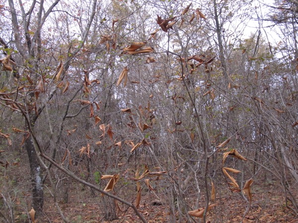前の写真と同じ枯れ葉が、まだ落ちずに空間を飾っていました。トチノキを、この公園に一斉に植えたのでしょうか。