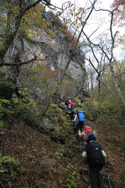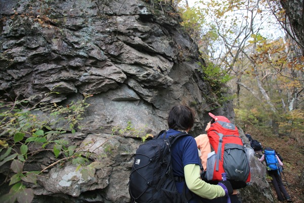 登り始めると雰囲気ががガラッと変わりました。この岩を抜けると岩石庭園の趣になっていきます。
