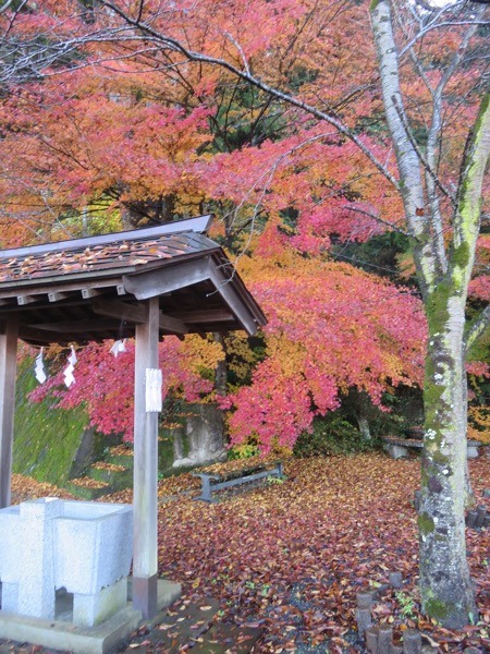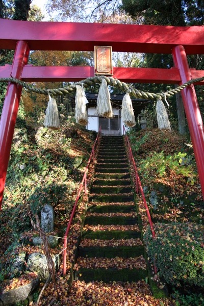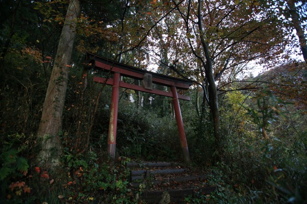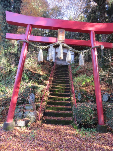 予定より早く下山。そこに待っていたのは 赤い鳥居。そして たっぷりと敷き詰められた色とりどりの落ち葉。