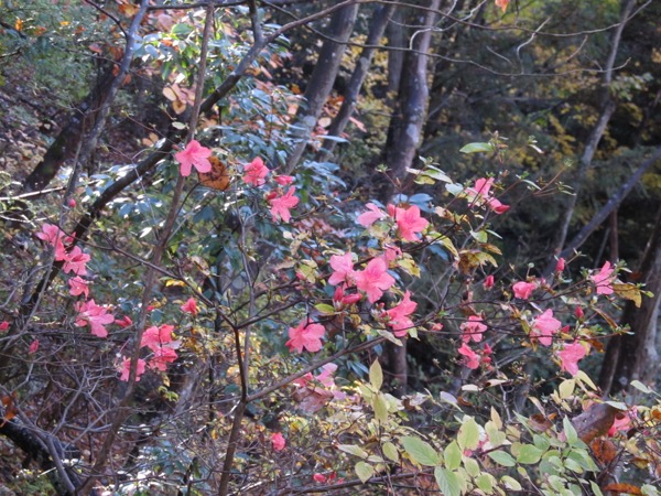 最近では冬咲きのサクラがずいぶん身近になりましたが、鬼石(おにし・群馬県)の桜山は日露戦争の戦勝記念に植えたソメイヨシノ1,000本のうち344本が師走に咲いたことから地元の三波石とともに国の天然記念物に指定されたとか。天然記念物は提唱者の三好学博士(東京帝大教授)の早トチリではなかったかと思う部分もあるのですが、ともかく三波石とともに冬桜が「三波川」というくくりで国の天然記念物に指定されたのです。昭和12年のことです。その後紆余曲折を経て、現在は7,000本の冬桜が冬と春に咲き誇っています。要するに冬に蕾の一部が咲き、残りは春に咲くというのが桜山の冬桜なのです。サクラのほかにツツジも同様の冬咲き現象があるといわれます。