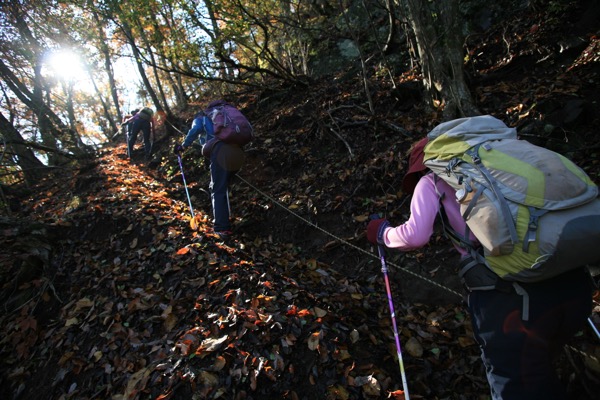 ロープが張ってあるので難所のひとつだと思いますが、こんな急登が続きます。