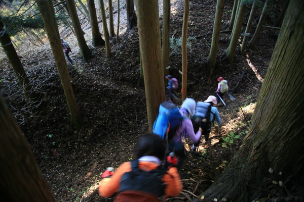 急登は、歩き方さえ間違えなければ合理的な登り方です。東北や北海道に残っている登山道に直線的に登るところが多いのは、山仕事をする人たちの合理的な判断が残されたからです。雪山の登山では(トラバースはしますが)わざわざジグザグを切ったりしないのと同じです。急登でも「平地を時速4kmで歩く」のと同じ出力で歩けるようになればいいだけです。