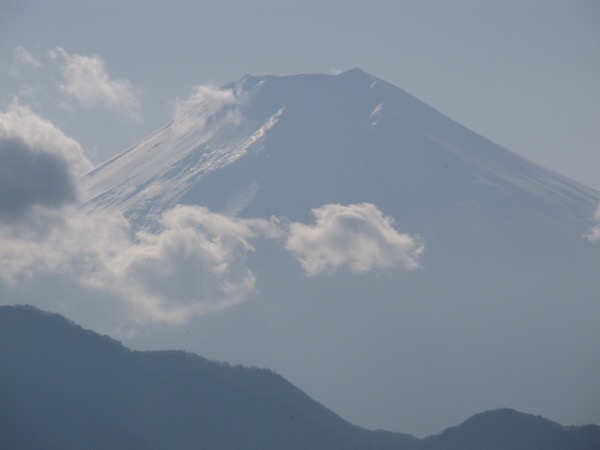 九鬼山山頂からの富士山です。この時間帯には太陽光線の角度で、富士山は見えにくくなります。この時刻でこれだけ見えればバンザイ! です。