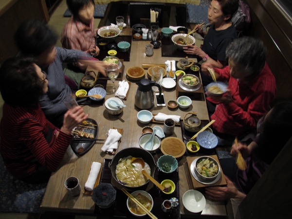 大月駅前の「よしの湯」が廃業になり、真木温泉に入りづらくなり、金山鉱泉まで足を伸ばしても大人数だとむずかしいなど、大月周辺での入浴環境がだんだん難しくなっています。藤野、高尾、八王子で入浴という選択肢もあるのですが、千葉方面から大人の休日倶楽部の3割引きチケット(途中下車不可)で参加している人は大月発19時04分の千葉行きあずさに乗りたい気持ちが強いので、できればこの辺で入浴+食事をまとめておきたいところなのです。勝沼ぶどう郷まで行って、天空の湯とワインレストランという選択も視野の中ですが、この日は別の選択肢になりました。富士急行線壬生駅方面へと歩く途中、古川渡交差点でツルタクシーに電話してみるとジャンボタクシーが空いているとのこと。こちらは7人だったので都留市の「芭蕉月待ちの湯」まで(3,420円)行って、大月駅まで(5,760円)と頼みました。食事はいつもの濱野屋で千葉行きの特急あずさを待ちながら。