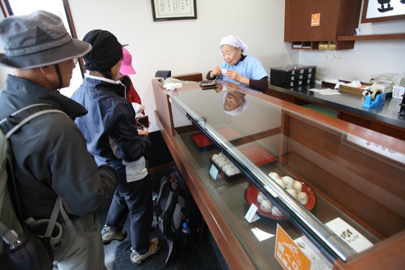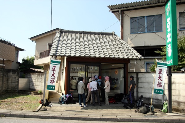 東武日光線の鹿沼で下車したら、岩山まで歩きます。わずか2kmですから、……ではなくて、この豆大福を逃したくないから。帰りがけには、もう買えません。結果論的にいえば、日の短いこの時期には、タクシーで1分でも早く登り始めるべきでした。