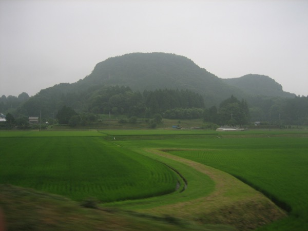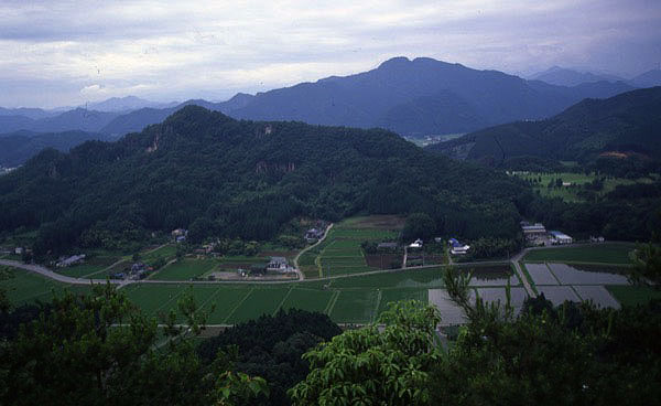 この岩山は 里の近くにあることが よく分かります。何か 古墳みたいに見える小さな山。