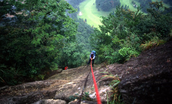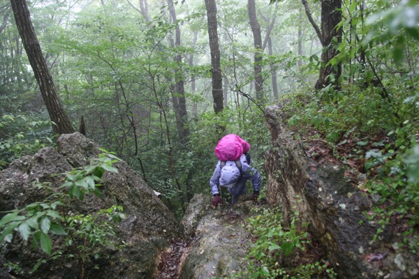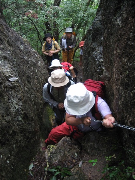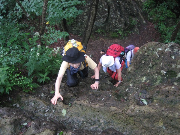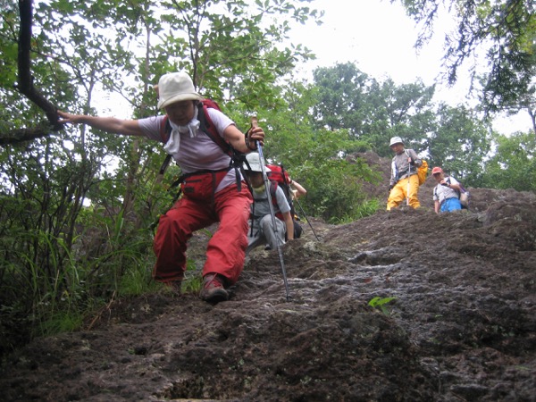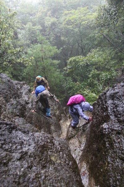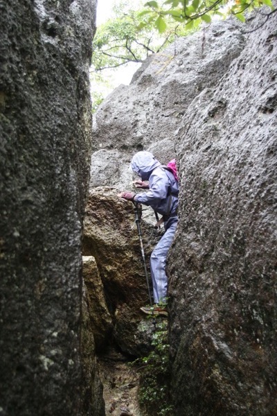 岩はやはりすこし滑りやすい状態です。進むか戻るかですが、雨が上がって、いい方向に向かうと希望的な判断をしました。