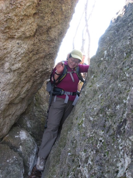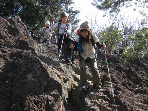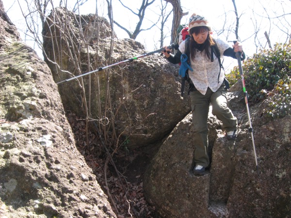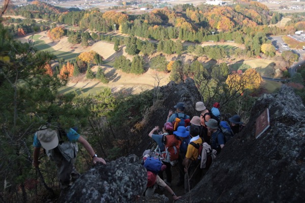 *糸の会の「ダブルストック講座」の実技編として岩山に行きました。計画書には────駅から歩いていける小さな山です。標高328m。小さな岩山ですが、岩場でのダブルストックのさまざまな使い方を体験することができます。それよりもなによりも、岩のテーマパークという感じです。お楽しみに。────と書きました。