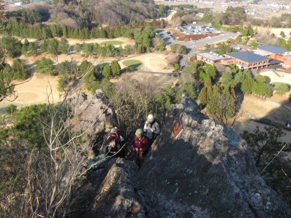 7月9日に予定していた岩山は雨のため計画を変更し、日光駅から鳴虫山に登ることにしたのです。そのため10−3月の下期にリベンジ企画としたのですが、今回も雨。東武日光線の車窓から見ていると、関東平野北部では雨が小降りになっていく気配、岩が濡れて危険なら最悪ロープで確保するとして、断行することを決めたのです。……というのは今回初参加の方が2人。最初のところで力量は判断できると考えたのです。