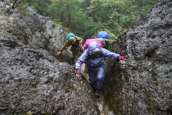 雨でも滑りにくい岩ですが、もちろんその場合には無理はしません。