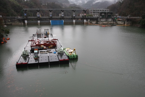 相模ダムの湖面には、なにか大規模な作業の進行があるようです。