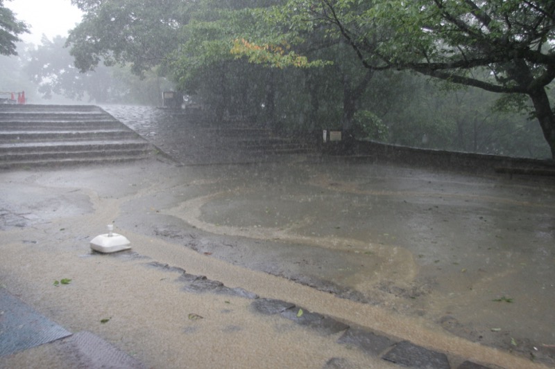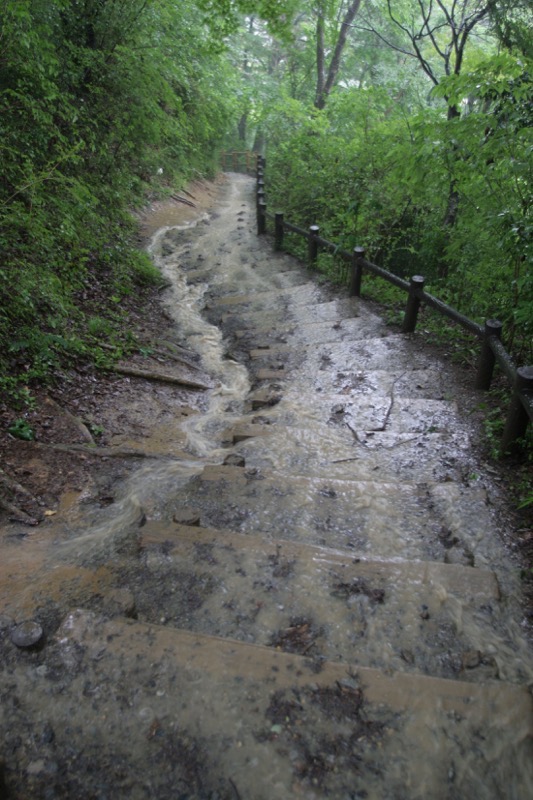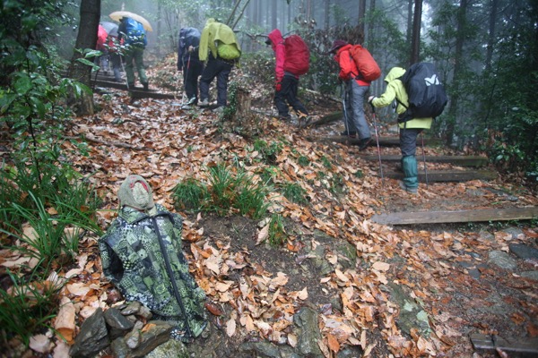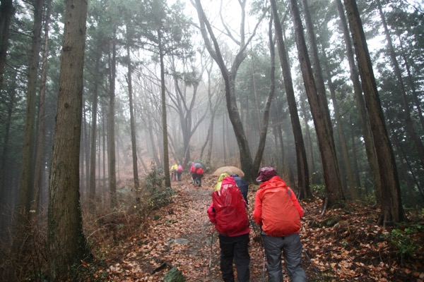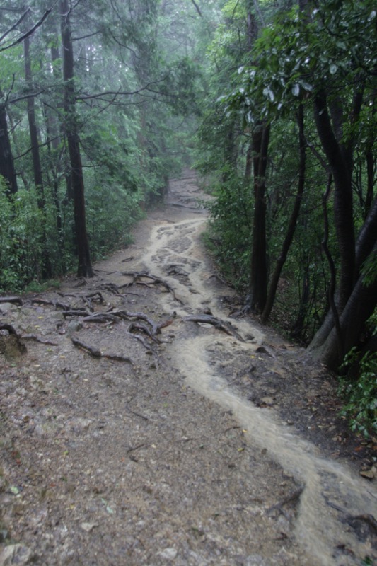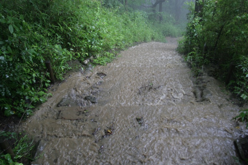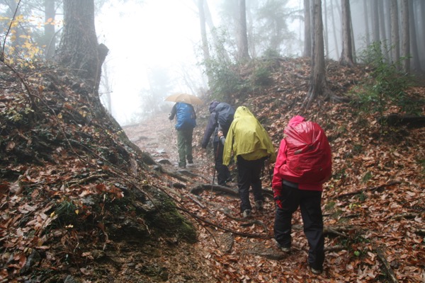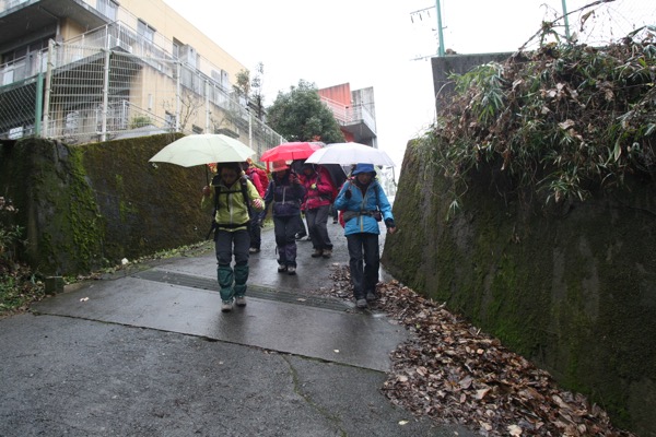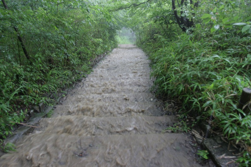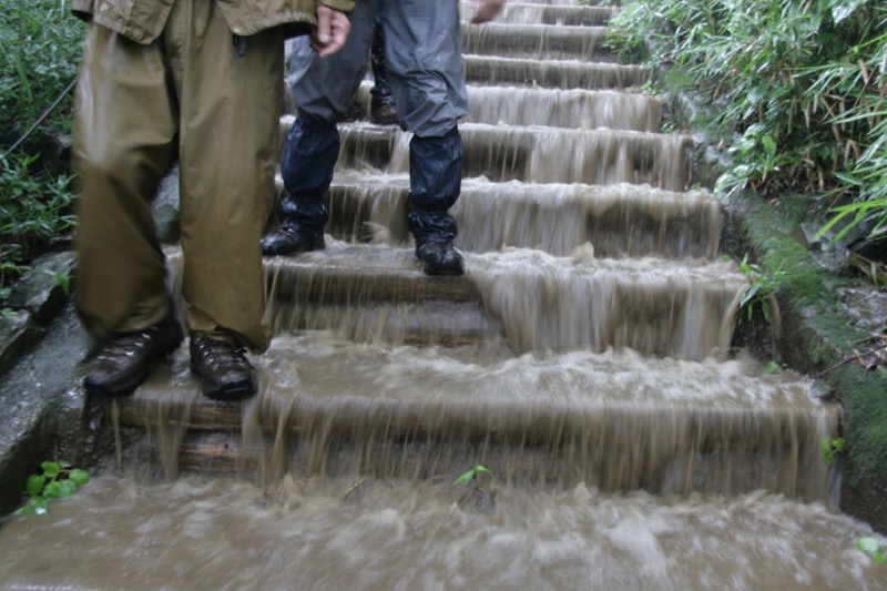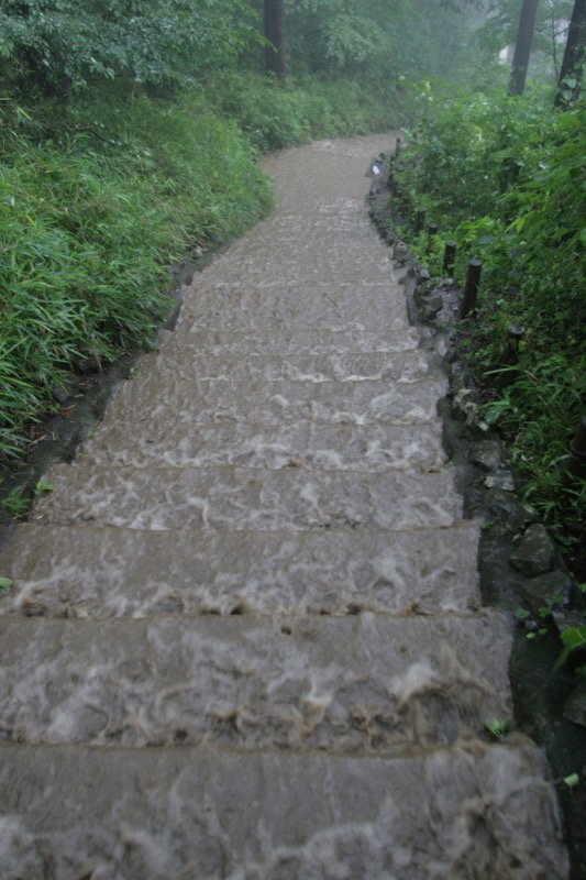 できれば「ダイヤモンド富士」を期待しつつ、高尾山への道を楽しもうという計画なのに、のっけから堂々たる雨。