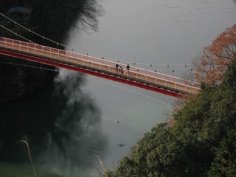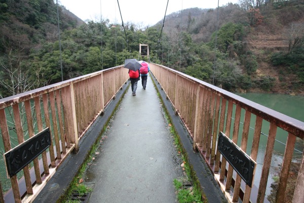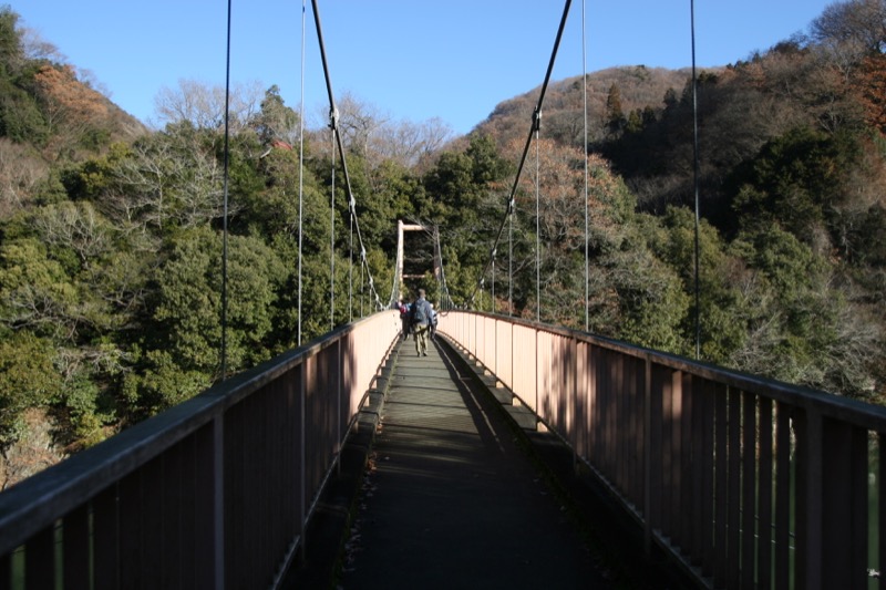 さっき、ダムのところで渡った相模川を、ここで渡り返します。吊橋の歩道です。