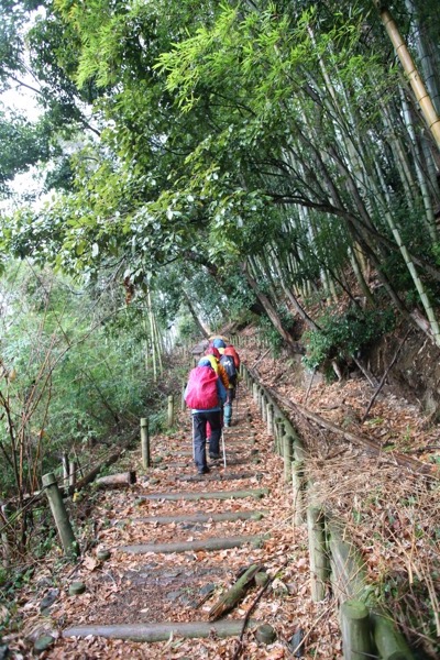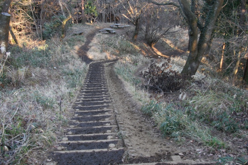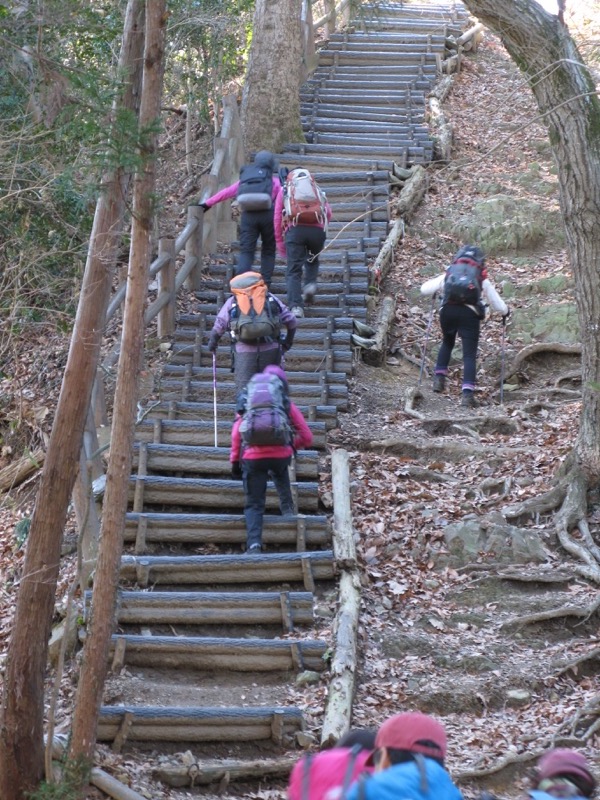 甲州街道(国道20号)の千木良バス停のところから登り始めることもできるのですが、まずはとっかかりの急登。高尾山と大阪の箕面を結ぶ東海自然歩道もまさにこの道です。