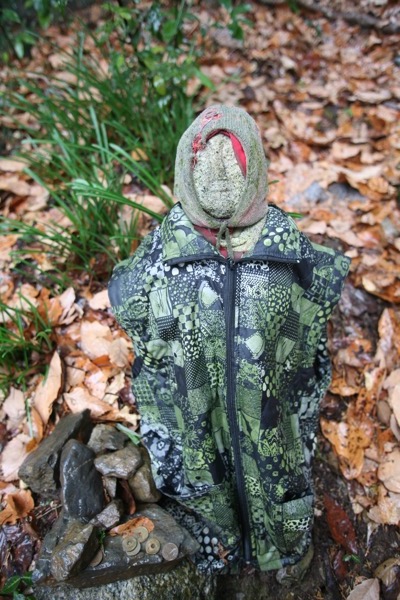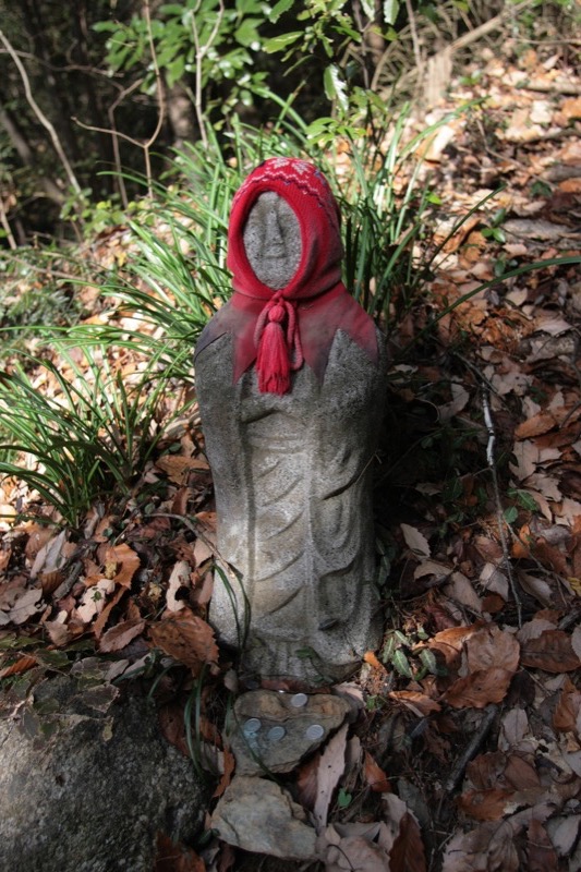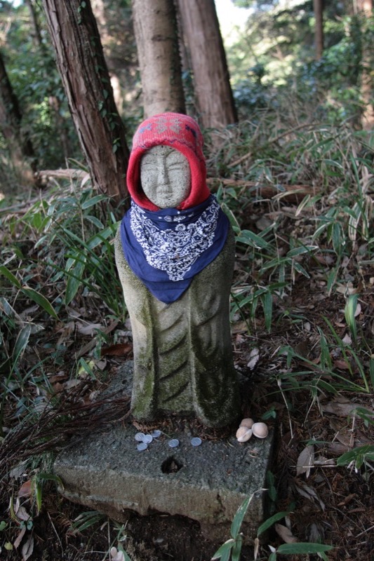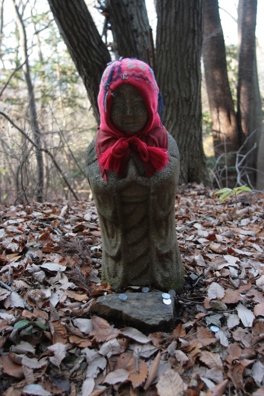 私の記憶ではこれがこの道での最後のものだったと思いますが、冬服の着せ方からして、個人的な思い入れが大きいという感じの、お地蔵さん……?