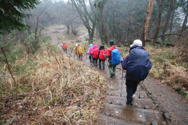 *この日はJR高尾駅からタクシーで蛇滝口バス停(標高約200m)まで行き、1035出発→1150自然研究路4号路→1240-1330高尾山山頂(標高599m)からシモバシラ観察など→稲荷山コースで下山途中、ミーティングなどで時間をつかい→1540高尾山口駅へ下山。