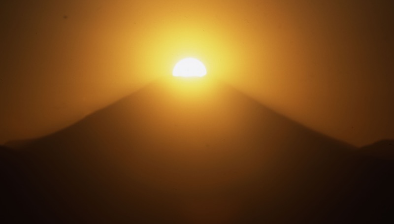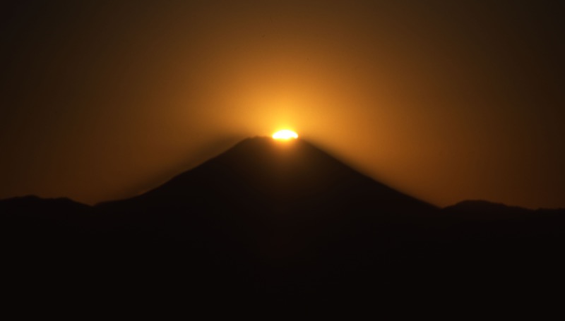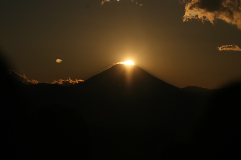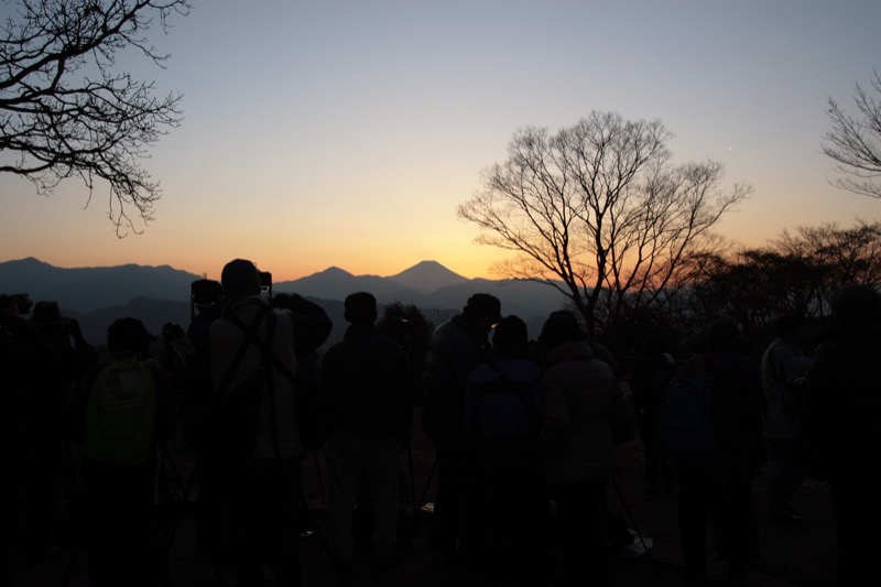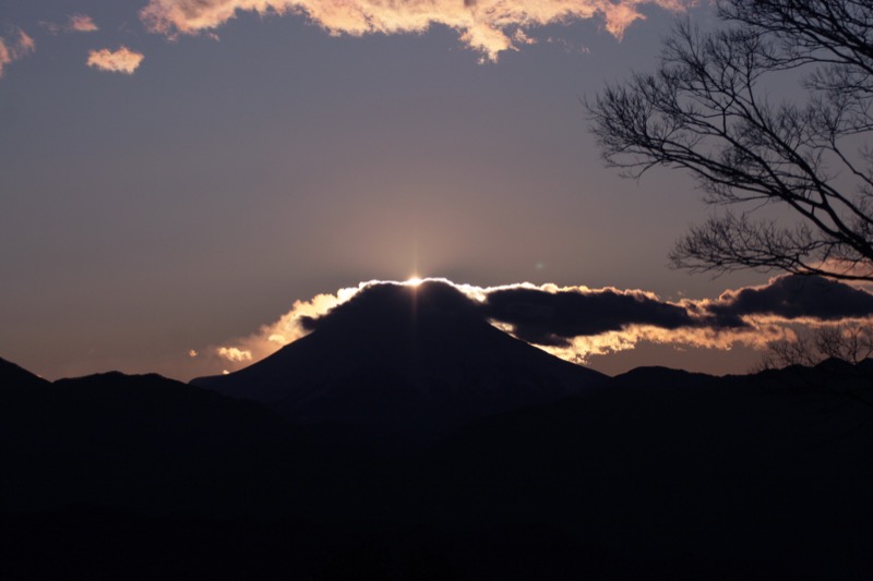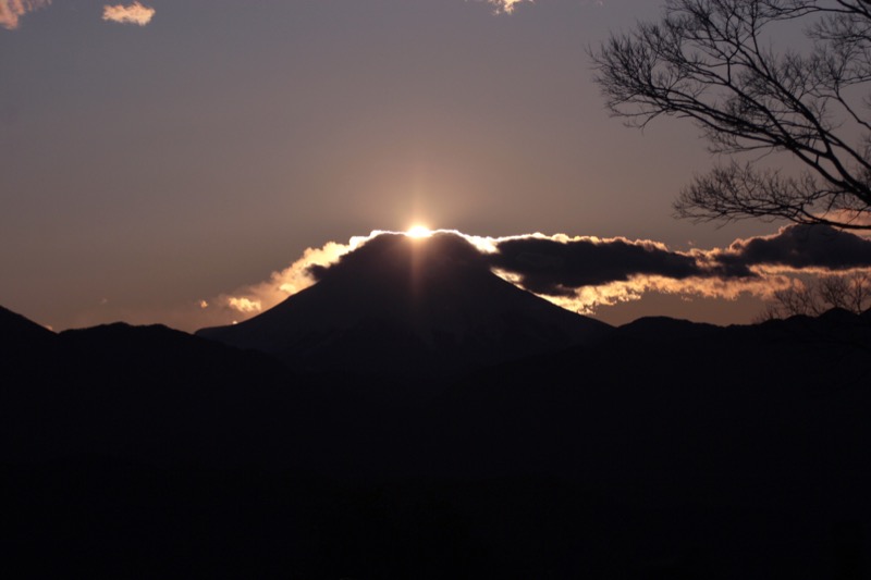 *この日は1010京王線・高尾山口駅(標高191m)を出発。自然研究路6号路のびわ滝コースから登って1230-45高尾山山頂(標高599m)→シモバシラを見るためにもみじ台へと下り、3号路から薬王院へ出て帰路につく途中で引き返し→1535-1620(この日の東京都の日没時刻は1631)高尾山山頂でダイヤモンド富士。