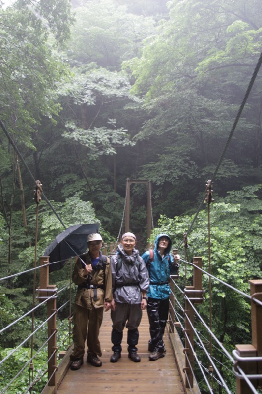 何回目になるかわからないが 今回も ダイヤモンド富士狙い。相模湖で下車し高尾山に向かう。降水確率75%というこの日 すでに雲行き怪しかったが 赤い吊り橋が 遥か下に見えた。カメラは 持参しても使うことないのではと思いつつも ひとかけらの期待に掛けて 持参した。