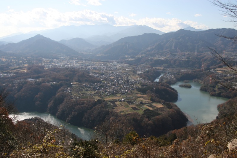 振り返ると相模川に沿った河岸段丘が、あちこちに、高低もいろいろ違ったりしながら散らばっています。