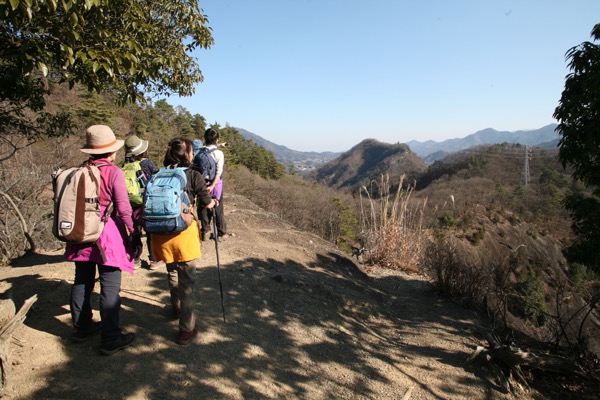 緩やかな登りが続きます。冬枯れの低山は、太平洋岸では西高東低の気圧配置で快晴が多く、当然のこととして富士山の展望を期待できます。