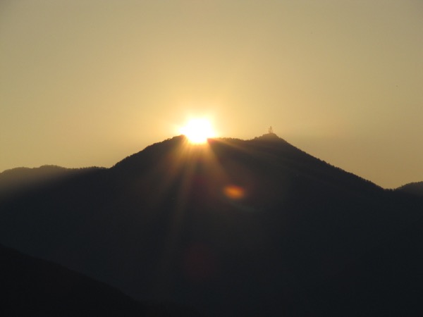 日没時刻から30分間は登山道をライトなしに下れます。その先の30分は明るい道と暗い道とで違いますが、西側に開いたこの城の道ではまったく問題ありません。日の出と日の入りの前後で人間の目の普段気づかない能力を確認するということは登山での貴重な体験だと考えます。