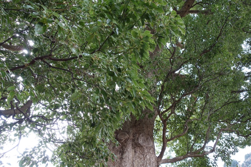 神社の前の立派なこの樹は何の樹? 葉脈がヤブニッケイのように葉の付け根から数本、放射状に伸びていて、シロダモに似ている?
