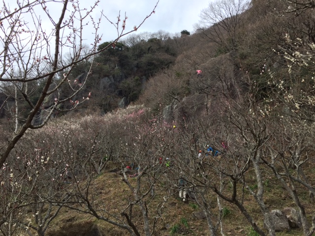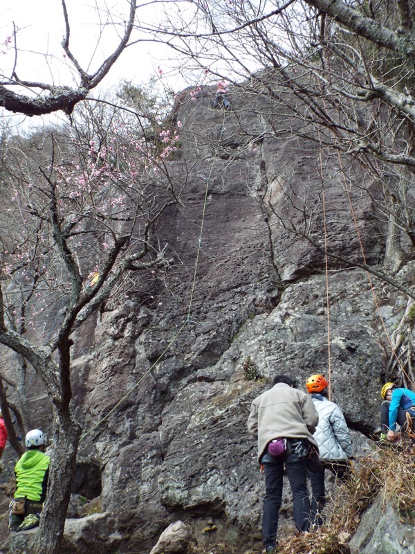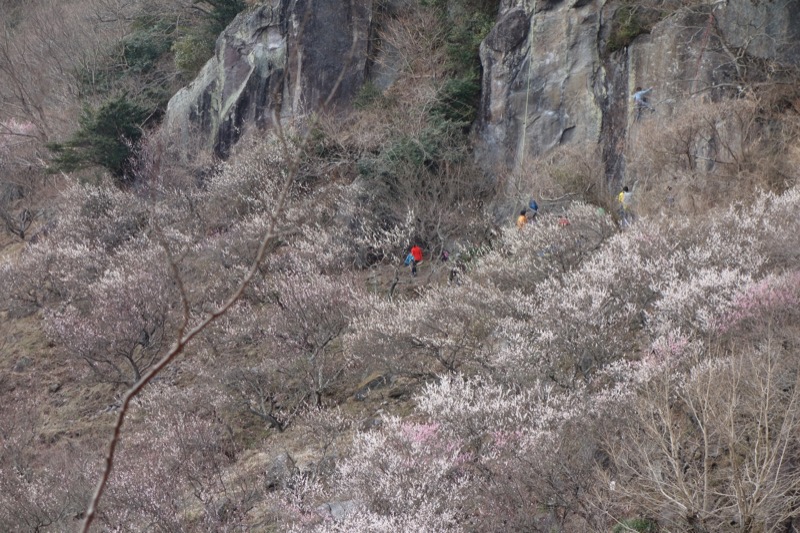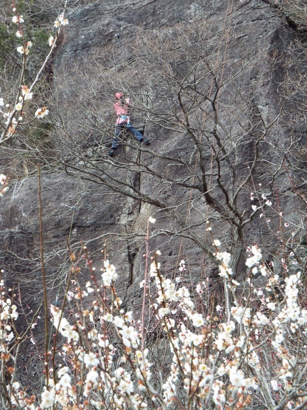 梅林の間から岩登りの人影が。一番手前はコーチ。うまく撮れましたか?