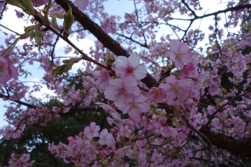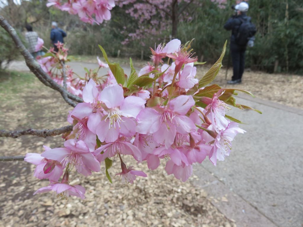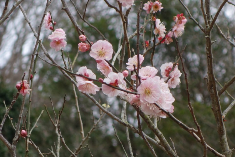 見頃を過ぎた梅に較べて出口にあったこの河津桜の新鮮なピンクが一際印象的だった。