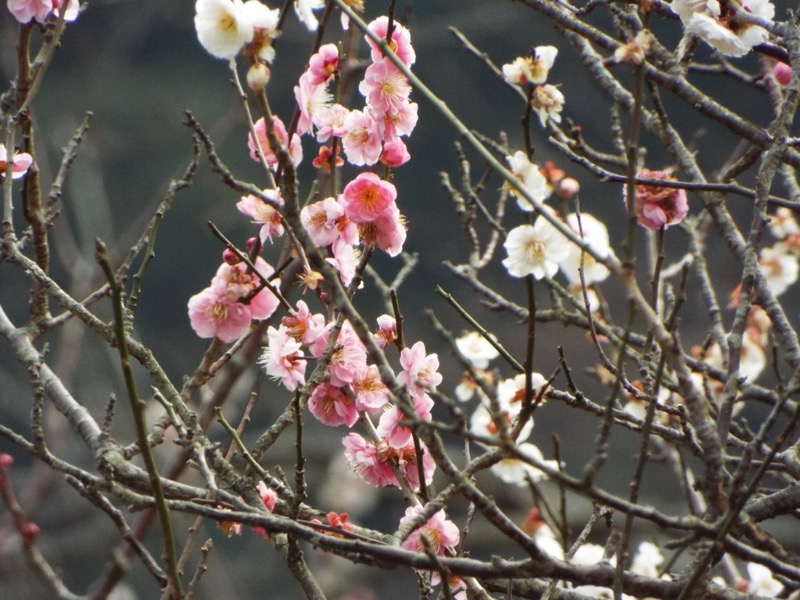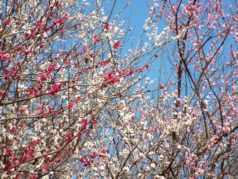 紅白入り交じり三部作、その1。白と濃淡の紅の素直な枝ぶりと林立が美しい。