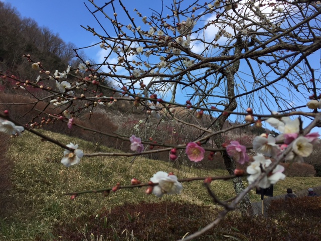 斜面一杯に 白やらピンクの梅が咲き誇っている。しばし ベンチに腰を掛け 時を忘れた。