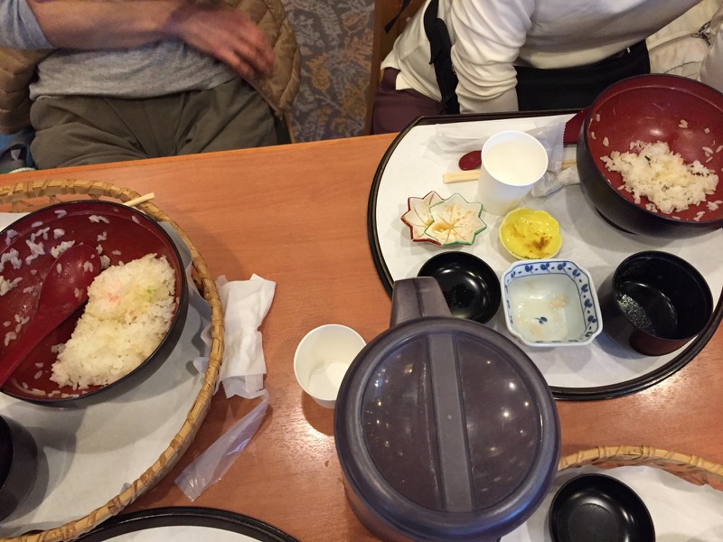 お風呂のあとはそこの食事処で食事。メニューも少なかったけど、ご飯の量に比べて料理の内容ががかなり見劣りしたようでした。