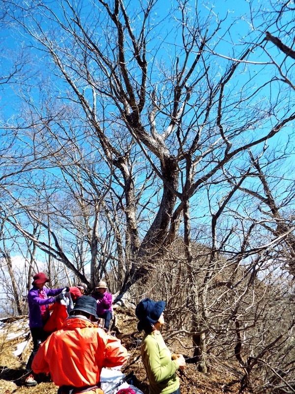 清八峠です。ここで私はホッとしました。稜線は日当たりがいいので、雪はかなり溶けているようでした。そこでとりあえず休憩し、アイゼンを外しました。