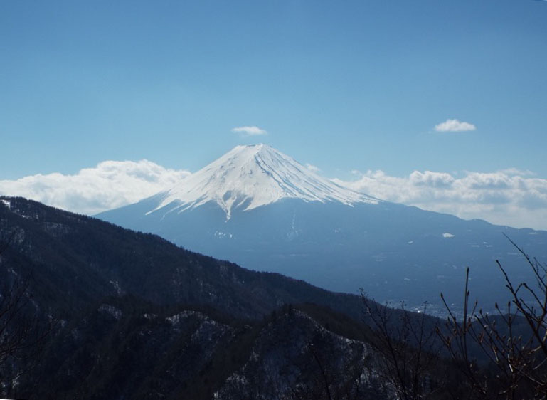 雲取山まで下がってこの富士山を見ると、遥かな富士山がその優美さによって風景全体を支えているということに感動します。