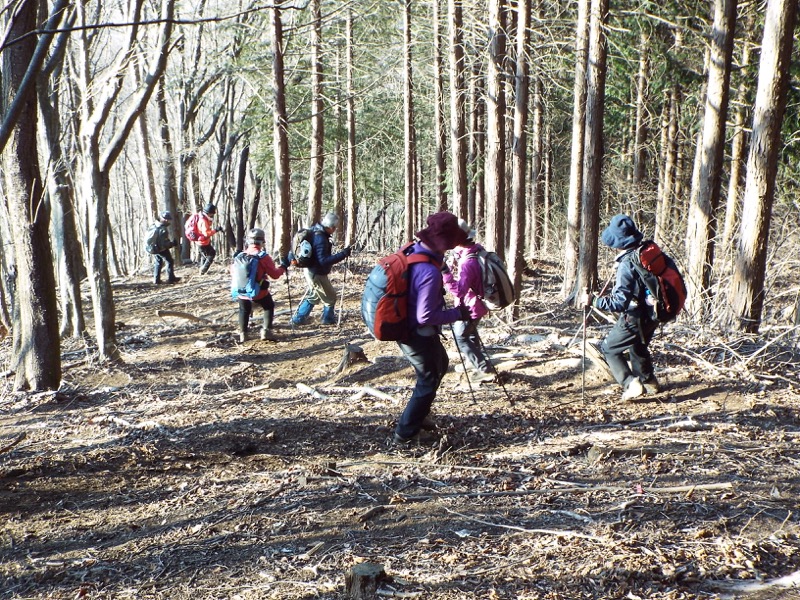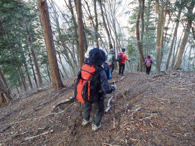 植林地の中を抜ける道から、小さな尾根に取りついて、登山道らしくなってきました。