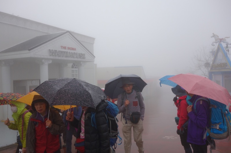 山頂駅はこのとおりガスに包まれ、どこが山頂かもわからない。とにかく、昼食が満足にとれないのではないか、と気になった。