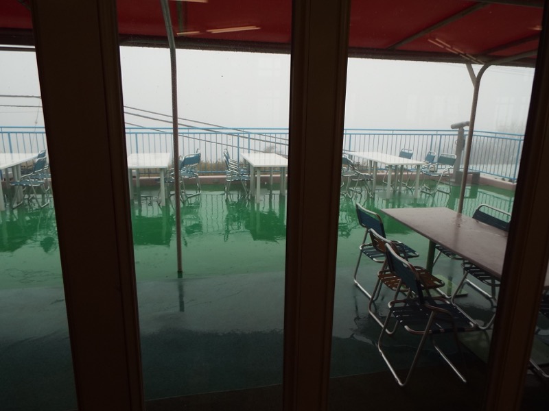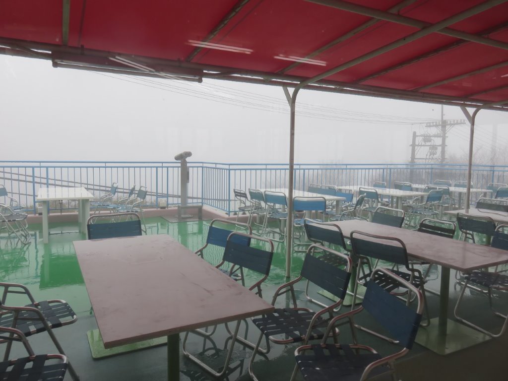 生駒山山頂には遊園地があって展望レストランがあるということなので昼食を食べてから出発、ということにしていました。これがその展望状況。他の施設のように「休業」ではなくて、休業状態でよかった。腹ごしらえをし、ゆっくり準備を整えました。