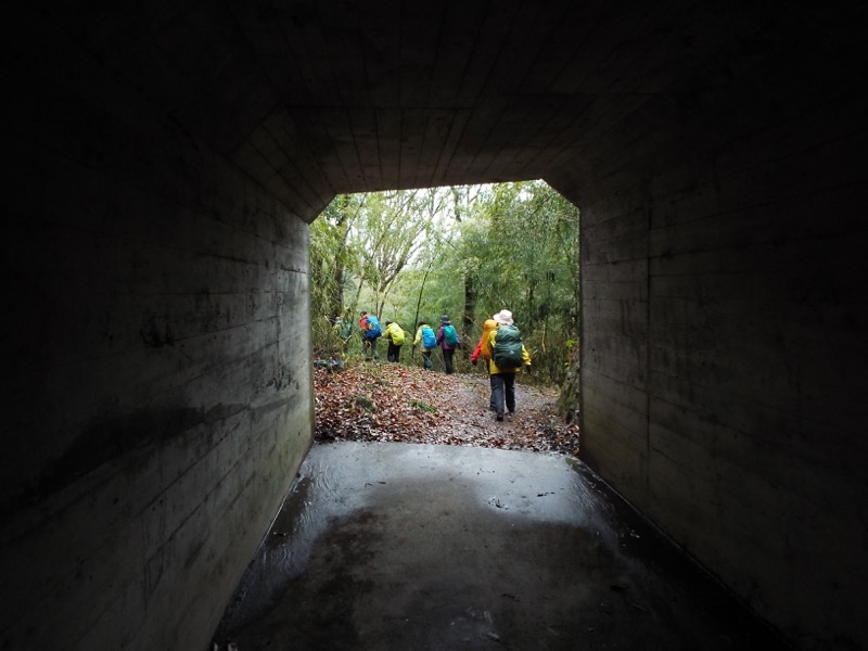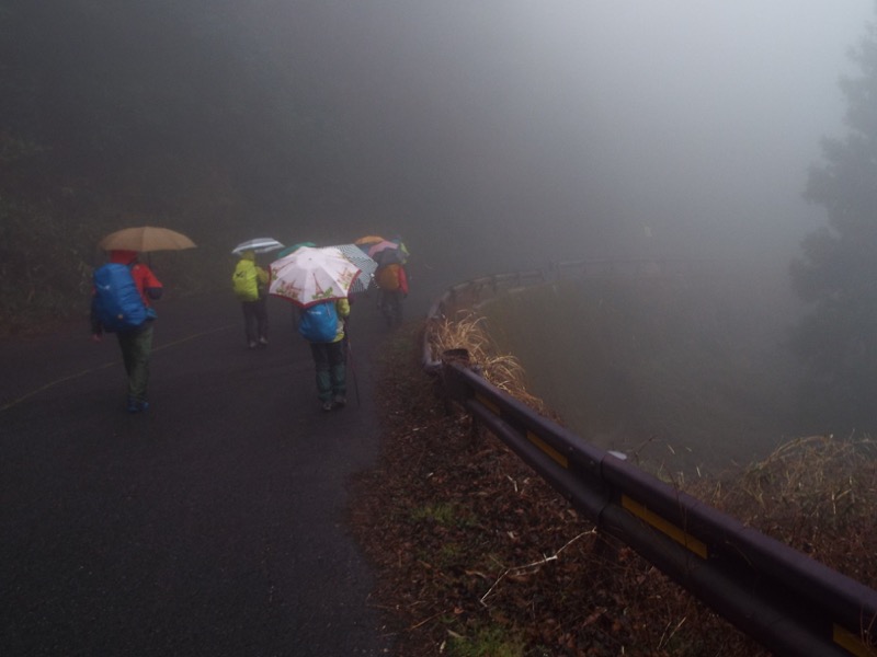 雨の中、中腹の林道を歩かされています。道のようすからすれば古い観光道路。生駒山に車で登る山岳観光道路だったように思えます。首都圏だったら奥武蔵グリーンロードという感じでしょうか。一種のスーパー林道だったはず……などと思いながら撮っています。