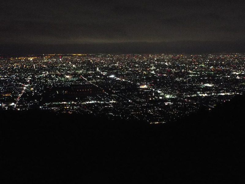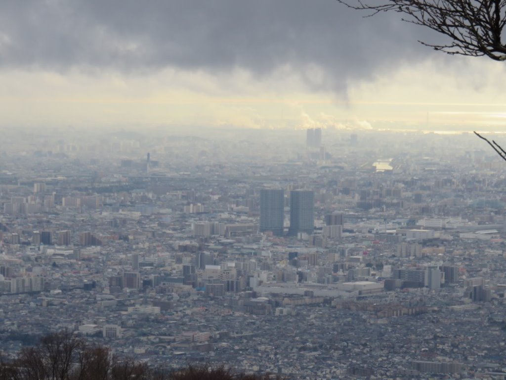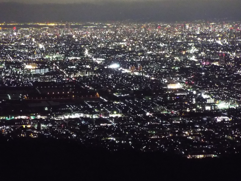 トイレ休憩の後、登り始めるとすぐにこの、大阪平野の展望が開けました。
