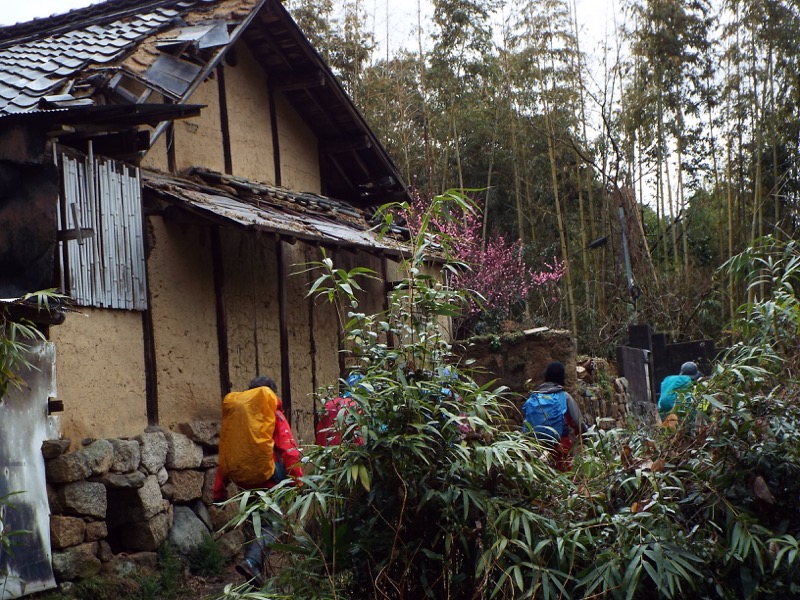 この道はときに集落の上限と接触します。あるいはこの道によって農家が進出したのかもしれません。ちょうどこのあたりを吹き抜ける風雨の中、レンズが濡れるのを恐れながら何枚か写真を取りました。